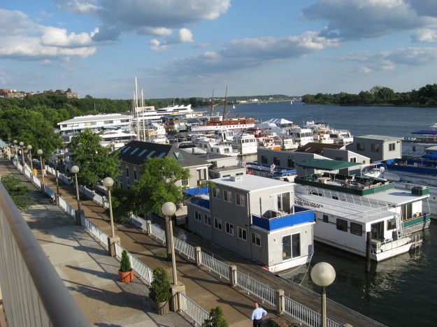 On to Washington D.C. on my birthday. Our out of the way hotel -- view from our balcony -- the marina on the Potomac channel