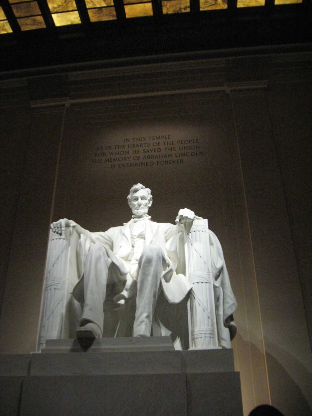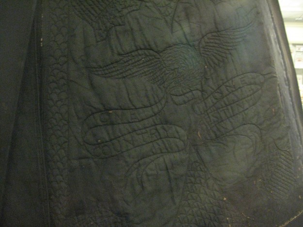 Cully tipped me off to look for this at Ford's Theater. The coat he was wearing was embroidered inside ("Just for him" she said) It says One Country - One Destiny.