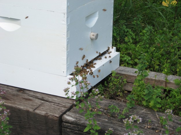 Bees are doing better — they were hanging outside the hive in the incredible heat — must be hotter than hell in there — they look more normal today