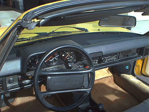 I noticed that the cluster is designed to use the four screw points from the original cluster support. This added extra stiffness. The screw points lined up perfectly but were about 1/3 inch away from each other. So I just got longer screws and that worked just fine. That cluster is more solid that the original 914 cluster ever was. Once I got those items in place and set, the rest was simple installation of the gauges. Which ironically took the longest amount of time to do. So my final opinion on installing a Getty Dash in a 914 is "GO FOR IT!" It was an easy one person, seven hour total install. Hey if I did it I know you can. I am a computer geek, not a mechanic. I did not have to cut anything off the car or remove the windshield. It is solid and a perfect fit. I can see all of the gauges just perfectly (As good as you can in a 911). Though a 1986 911 style steering wheel is a must. Luckily I already had that. And the final results are better than I could have expected. The 911 style dash looks stock, like it belonged. They really should have made the 914 with this dash in the first place. Here are the final install pics. Oh, one note, I know I have two clocks right now. I am waiting for my Cylinder Head Temp gauge to arrive that will go in the lower console where the clock is now. If you have any questions or just want to take about the Getty Dash send me a note to clandt@nmsu.edu. Enjoy! Here is a quick 7MB video I made. Its a little dark and grainy. I will try to redo it in the sunlight with the top off for a better look. |